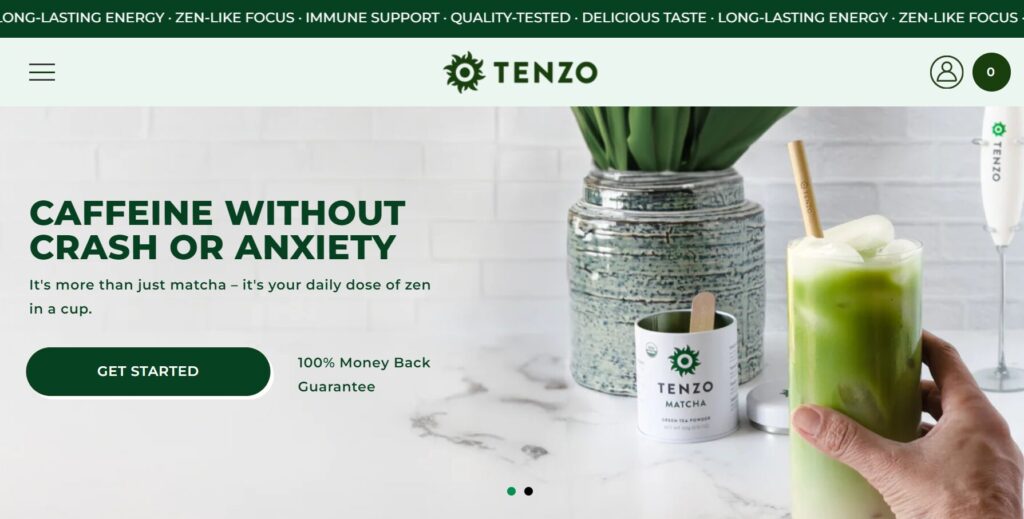 Tenzo focused on high-quality matcha sourced directly from Japanese farms, but what set them apart was their direct-to-consumer strategy and educational content. Their branding leans clean, energetic, and modern, and they’ve invested heavily in building a community of daily users.