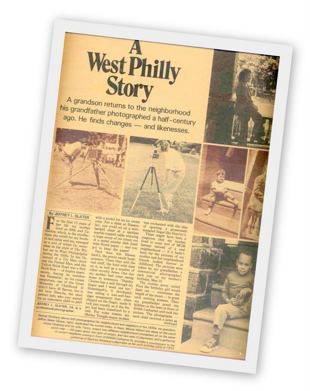 Although I wrote much of this story and took all of the contemporary photographs, my Aunt Annette was my co-author, editor and inspiration for the writing in this work. My grandfather George Ginsberg was the inspiration for the photography. I am republishing this story on my blog to honor my mother Bea and the legendary tales she continues to tell me about Catharine Street in West Philadelphia and as a tribute to my beloved aunt Annette Lawrence and my grandfather George Ginsberg. To this day my mother, aunt and grandfather remain vitally important creative inspirations in my life.