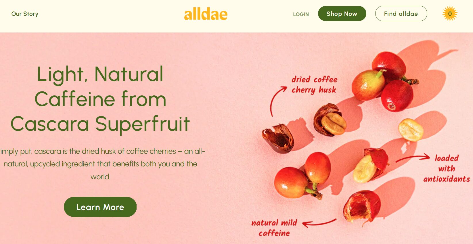 The core of Alldae is cascara, the dried fruit of coffee cherries. It’s an upcycled byproduct of coffee production with genuine benefits: natural caffeine, antioxidants, and a compelling sustainability story.