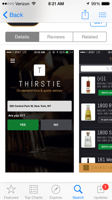 You are sitting at home, at a party or a corporate event and realize you don’t have enough wine. (or beer or booze). Someone has to go out to the local liquor store. Or you can click on Thirstie. An app designed for the on-demand wine and spirit market.